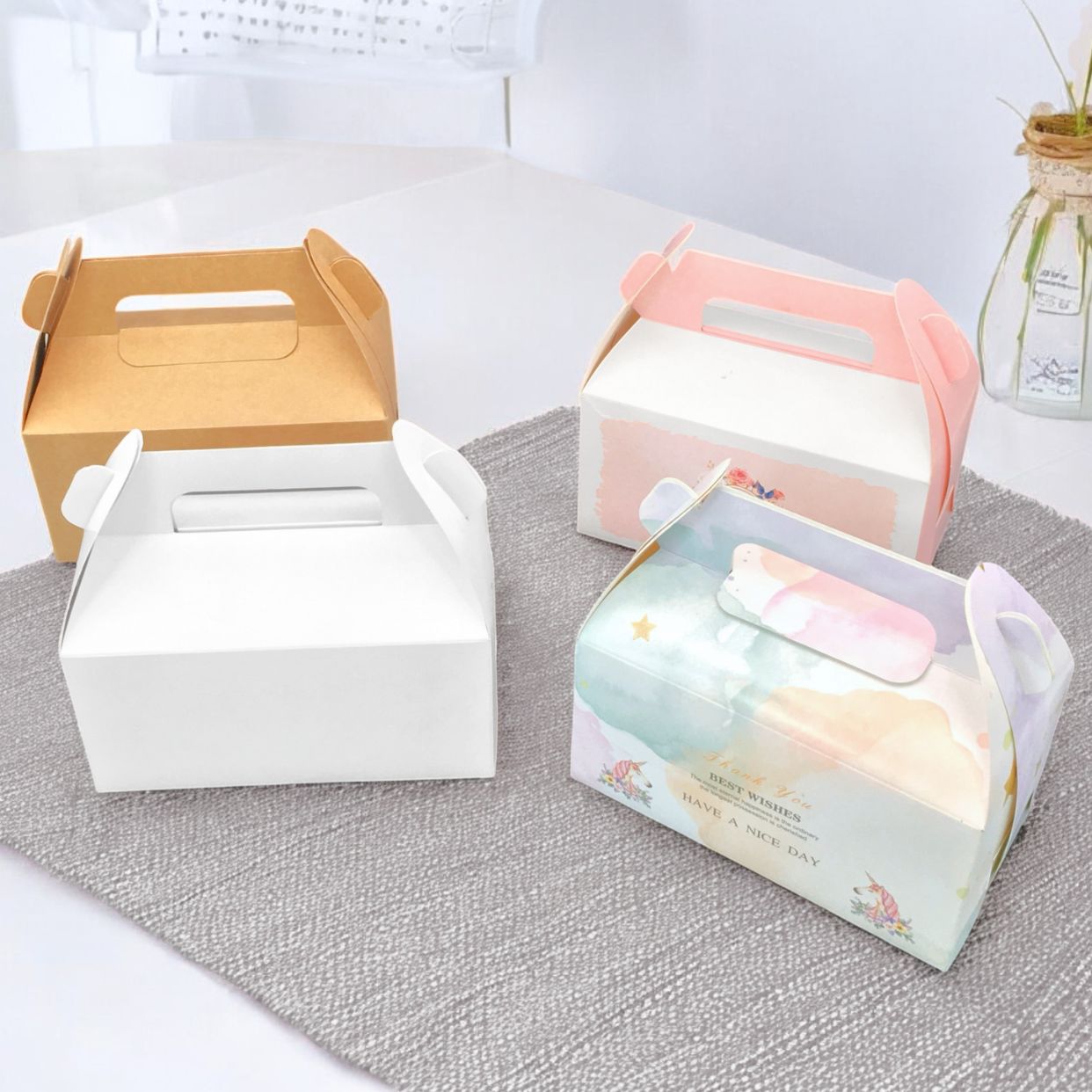 Sesuaikan saiz kotak mengikut jenis kek – sama ada kek penuh, kek cawan, kek bento atau kek lapis. Kotak terlalu besar atau terlalu kecil boleh merosakkan persembahan kek.